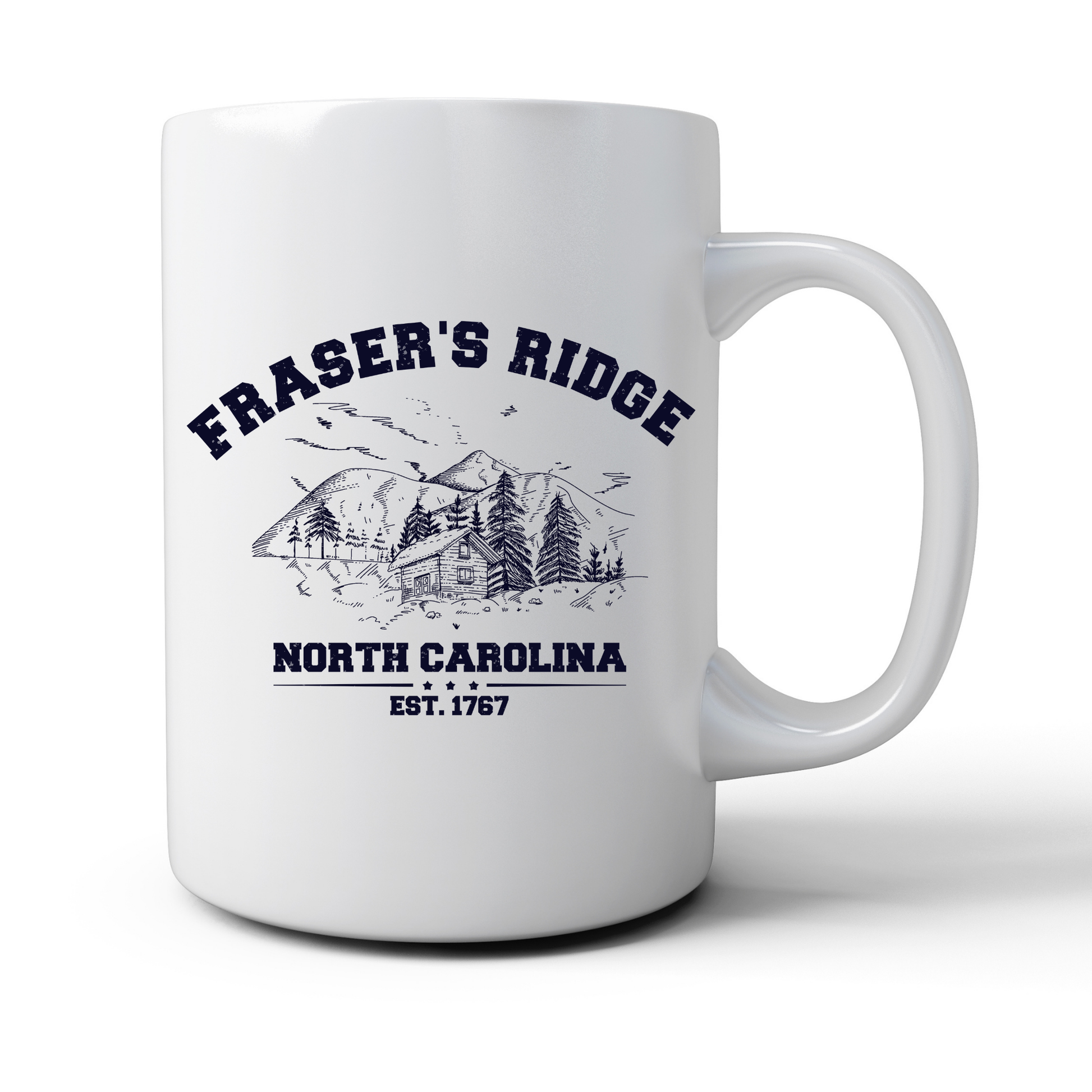 15 oz White Ceramic Mug. Double printed with design on both left and right of handle.