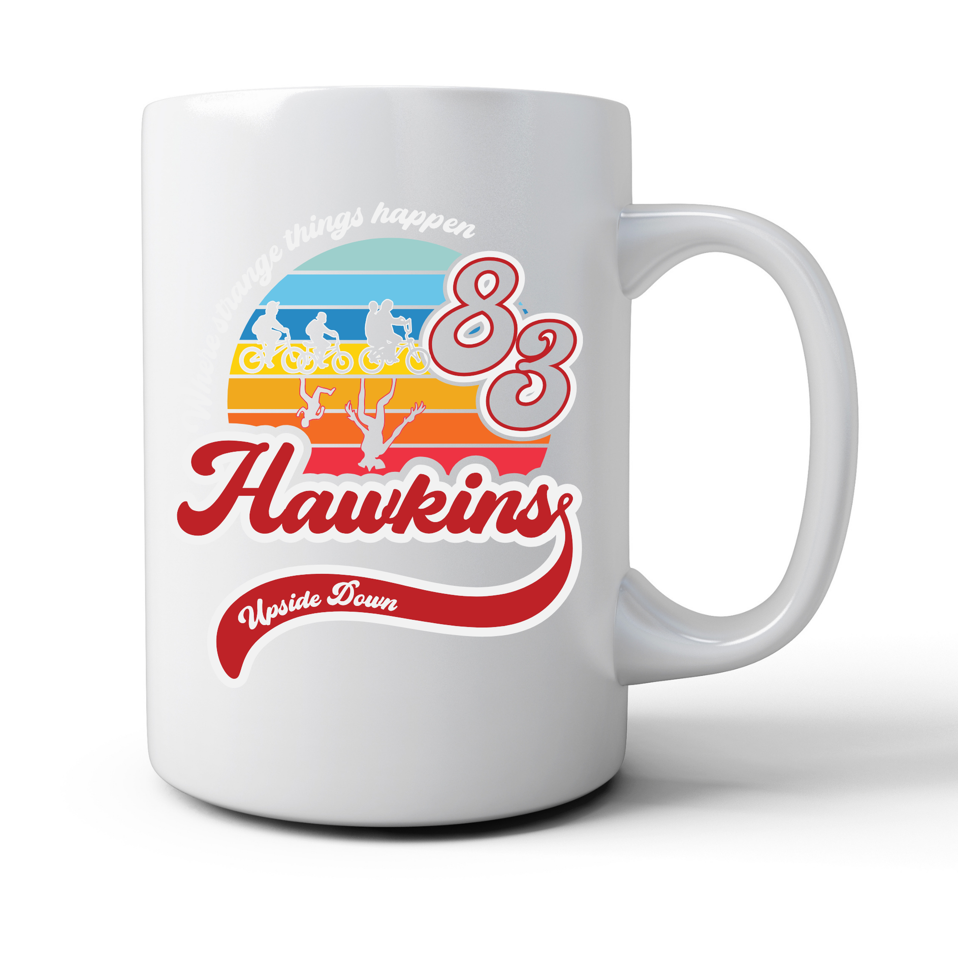 15 oz White Ceramic Mug. Double printed with design on both left and right of handle.