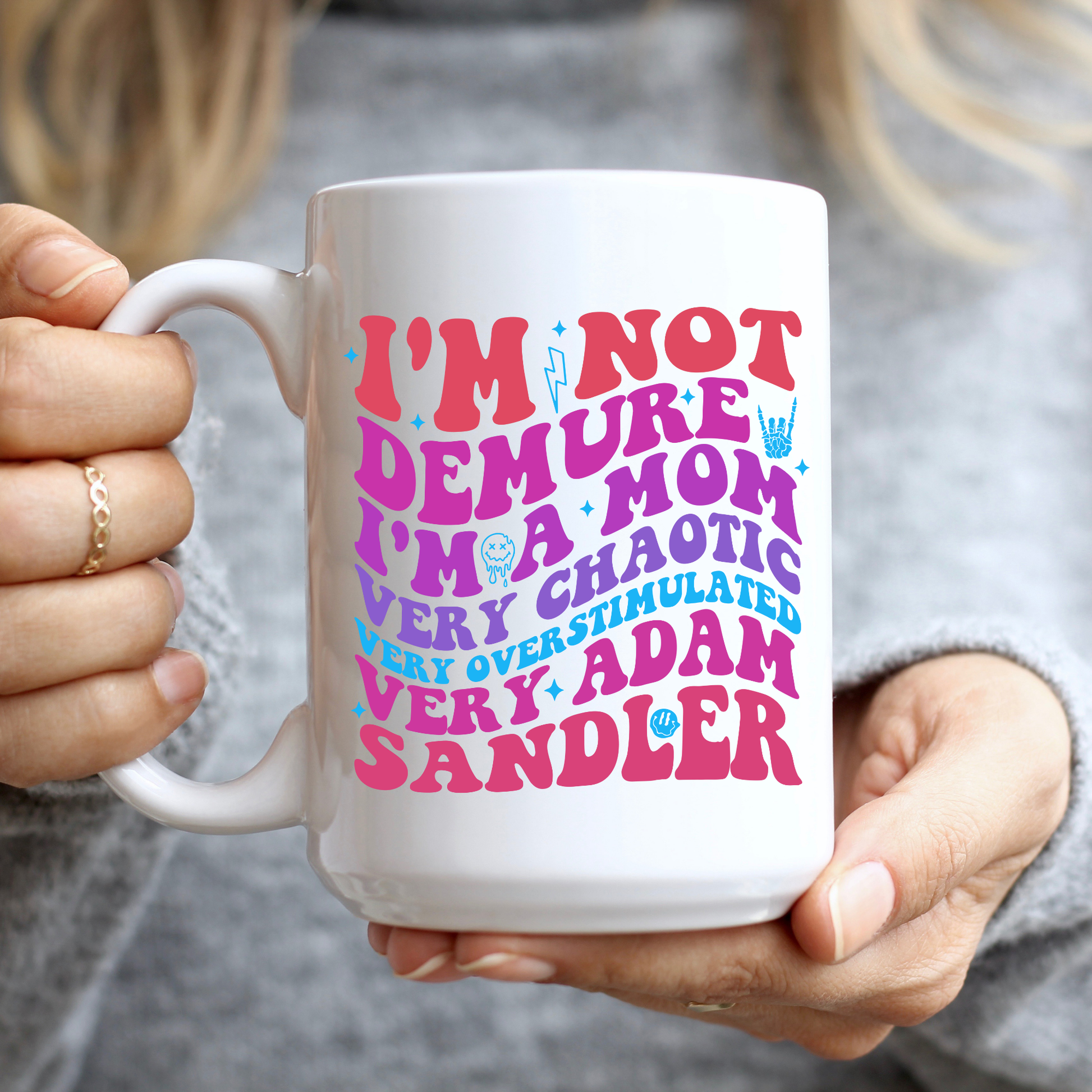 Very chaotic, very overstimulated. But hey, Mom's don't have to be demure! Perfect for you, or as a gift!