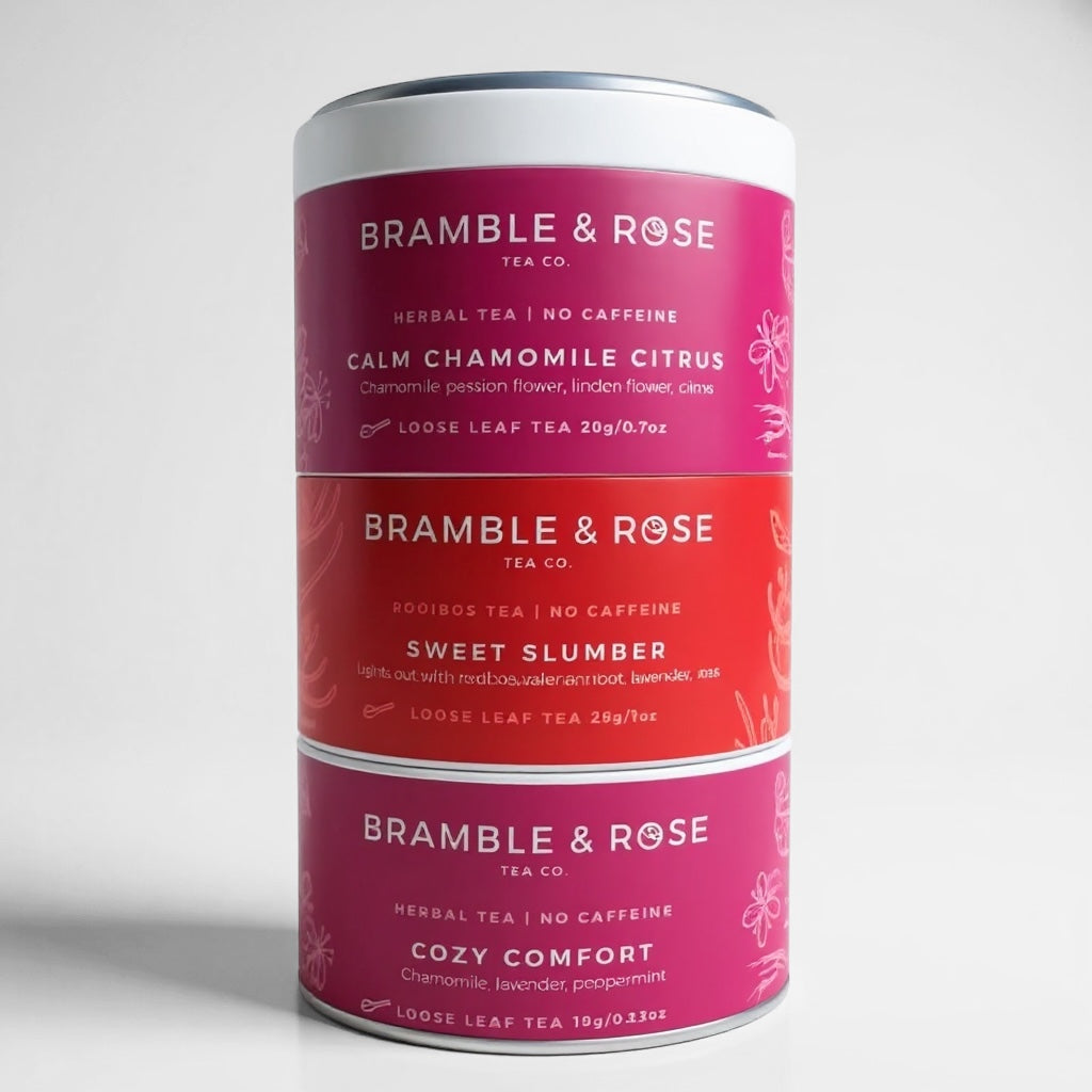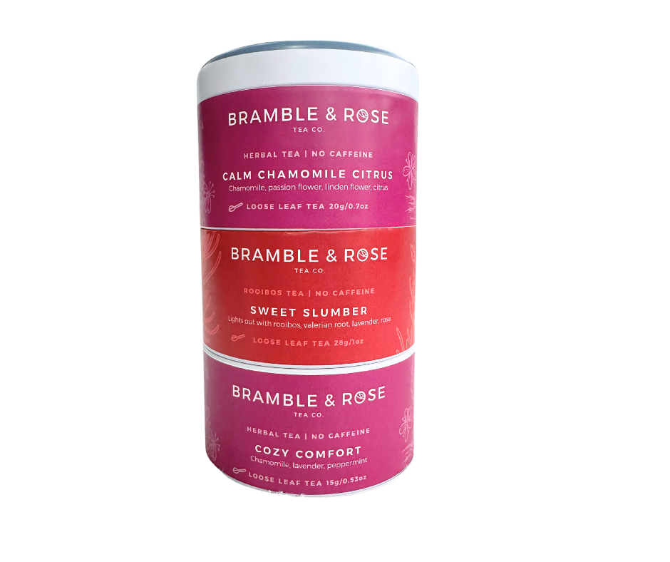 Bramble & Rose Tea Co.'s Variety Sampler...2.0! Our Lullaby Collection offers 3 unique Caffeine-Free teas that will sooth you along your way to a beautiful nights rest ! We can't forget about the fabulous handheld steeper we've included as well. Each tea makes 10 cups and can be steeped a second time. A great gift or treat for yourself!